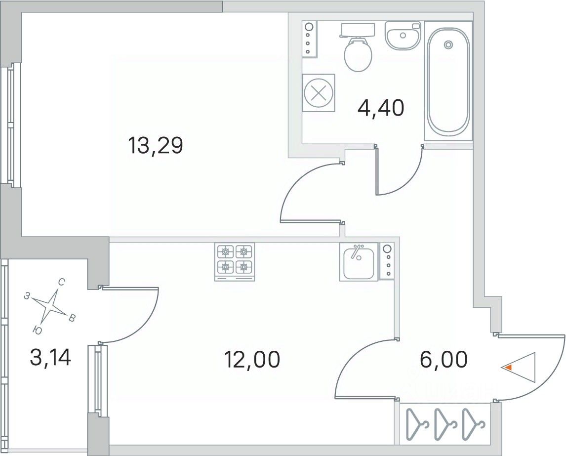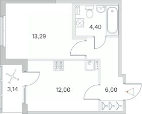 Жилая площадь13,3 м²