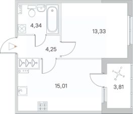Жилая площадь13,3 м²