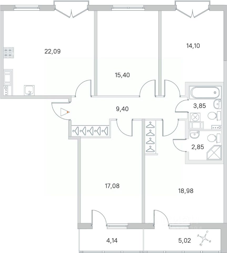 Площадь кухни22,1 м²