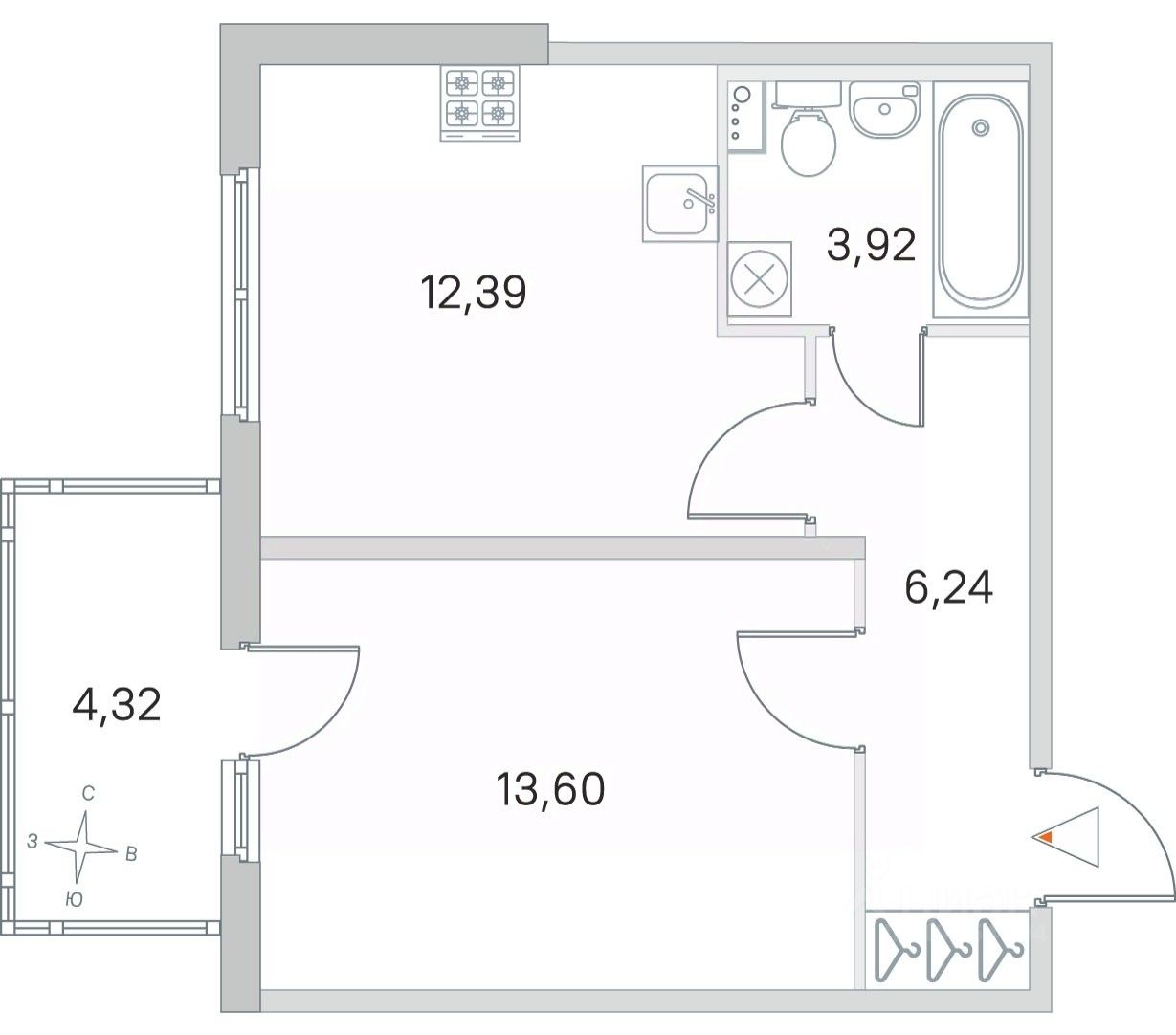 12,4 м²