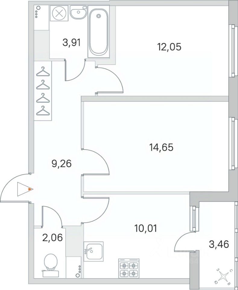 Общая площадь54,4 м²
