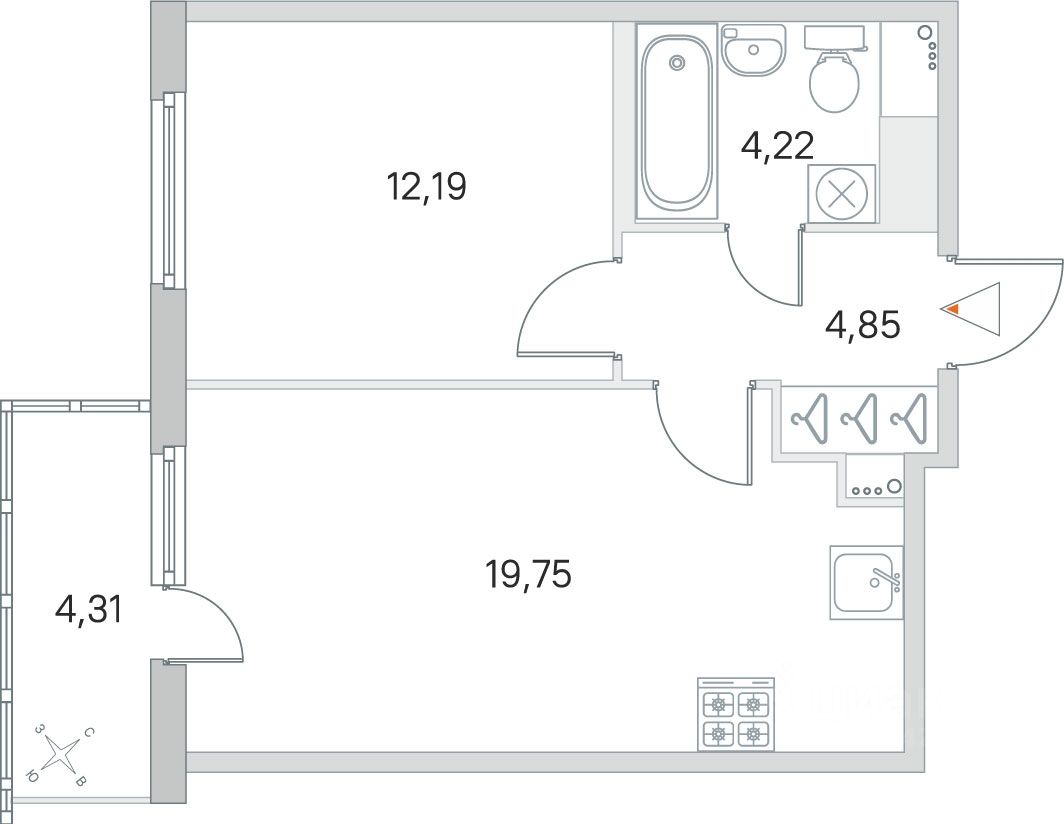 Жилая площадь12,2 м²