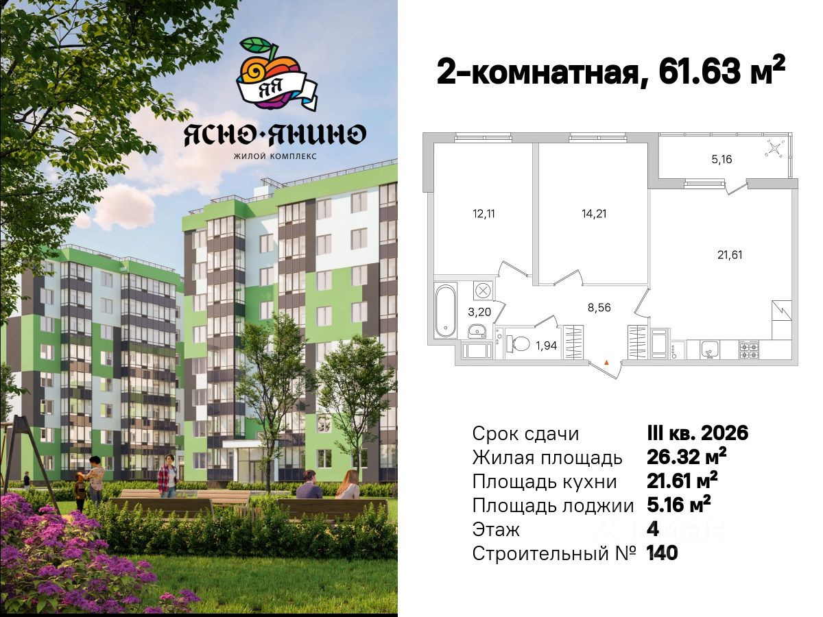 "Ясно.Янино" комфортный современный микрорайон, построенный по принципам нового урбанизма. Он состоит из домов высотой 8 этажей, выполненных в едином лаконичном стиле, характерном скандинавской архитектуре. Застройка ведется в шесть очередей, две из которых уже построены и заселены. "Ясно.Янино" проект комплексного освоения территории. Вся необходимая инфраструктура представлена внутри квартала. Здесь уже работают отделения детской и взрослой поликлиники, в которых принимают по полисам ОМС, детский развивающий центр и частный детский сад, пожарное депо, магазины и кафе шаговой доступности, по соседству функционирует конный клуб "Исток". Силами застройщика ГК "КВС" возводится муниципальный детский сад и уже получено согласование проектов еще двух детсадов и школы. Янино самый ближайший пригород Санкт-Петербурга. Дорога до станции метро "Ладожская" или "Проспект Большевиков" займет всего 20 минут. Остановка общественного транспорта есть прямо на территории "Ясно.Янино", кро