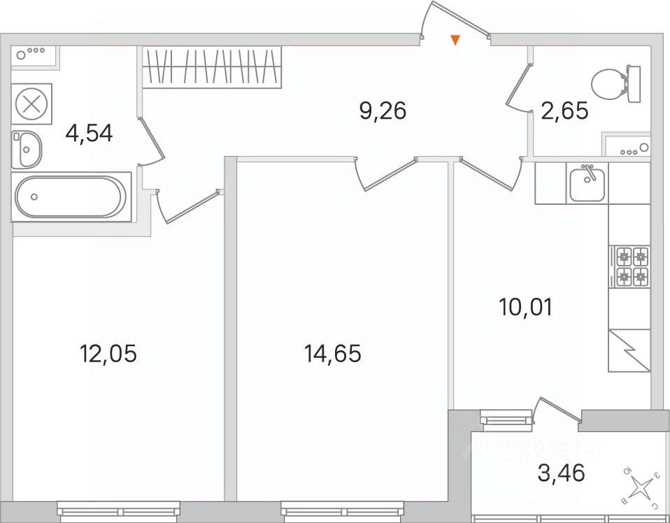 Общая площадь54,83 м²