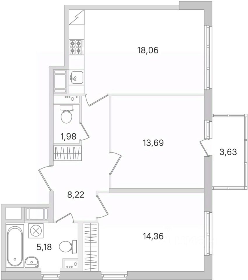 Площадь кухни18,1 м²