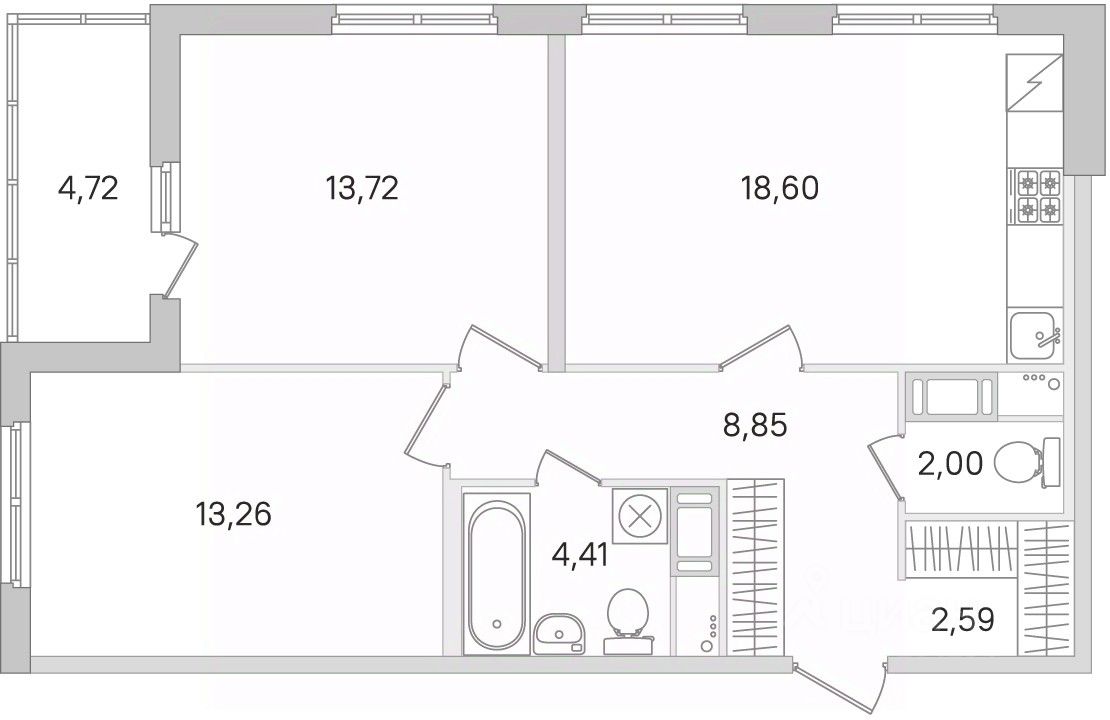 Площадь кухни18,6 м²