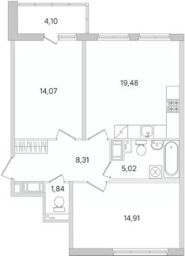 Площадь кухни19,5 м²
