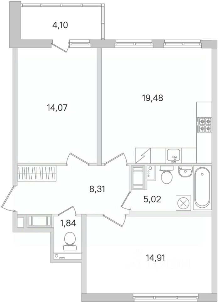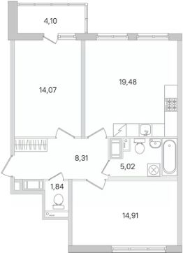 Площадь кухни19,5 м²
