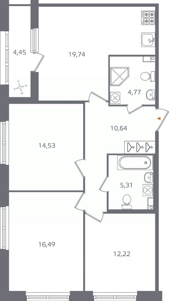Площадь кухни19,7 м²