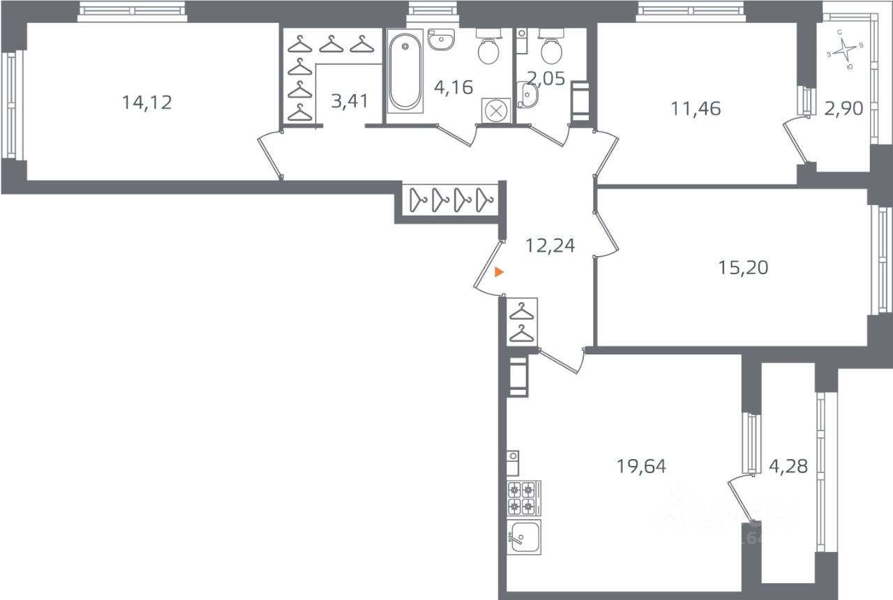 Площадь кухни19,6 м²