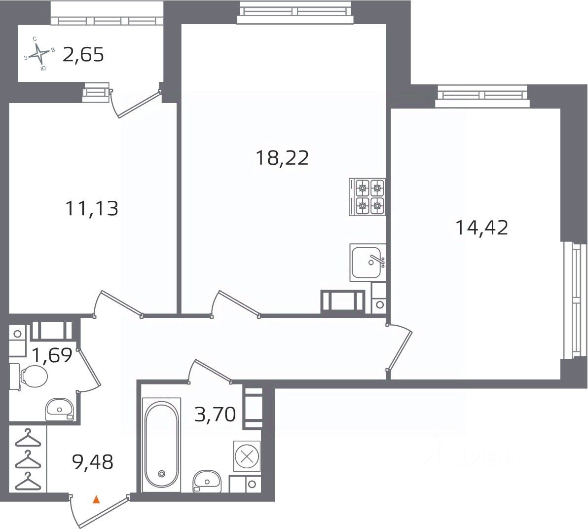 Общая площадь58,64 м²
