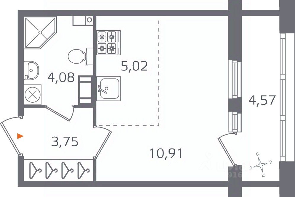 Жилая площадь10,9 м²