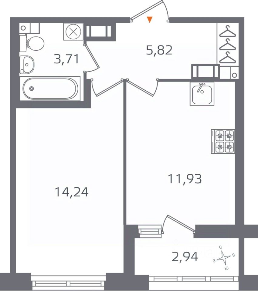 Жилая площадь14,2 м²