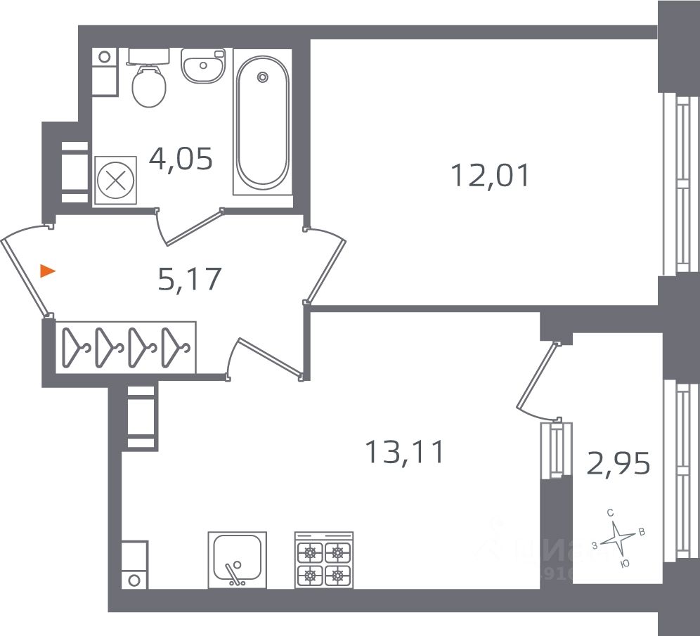 Общая площадь34,34 м²