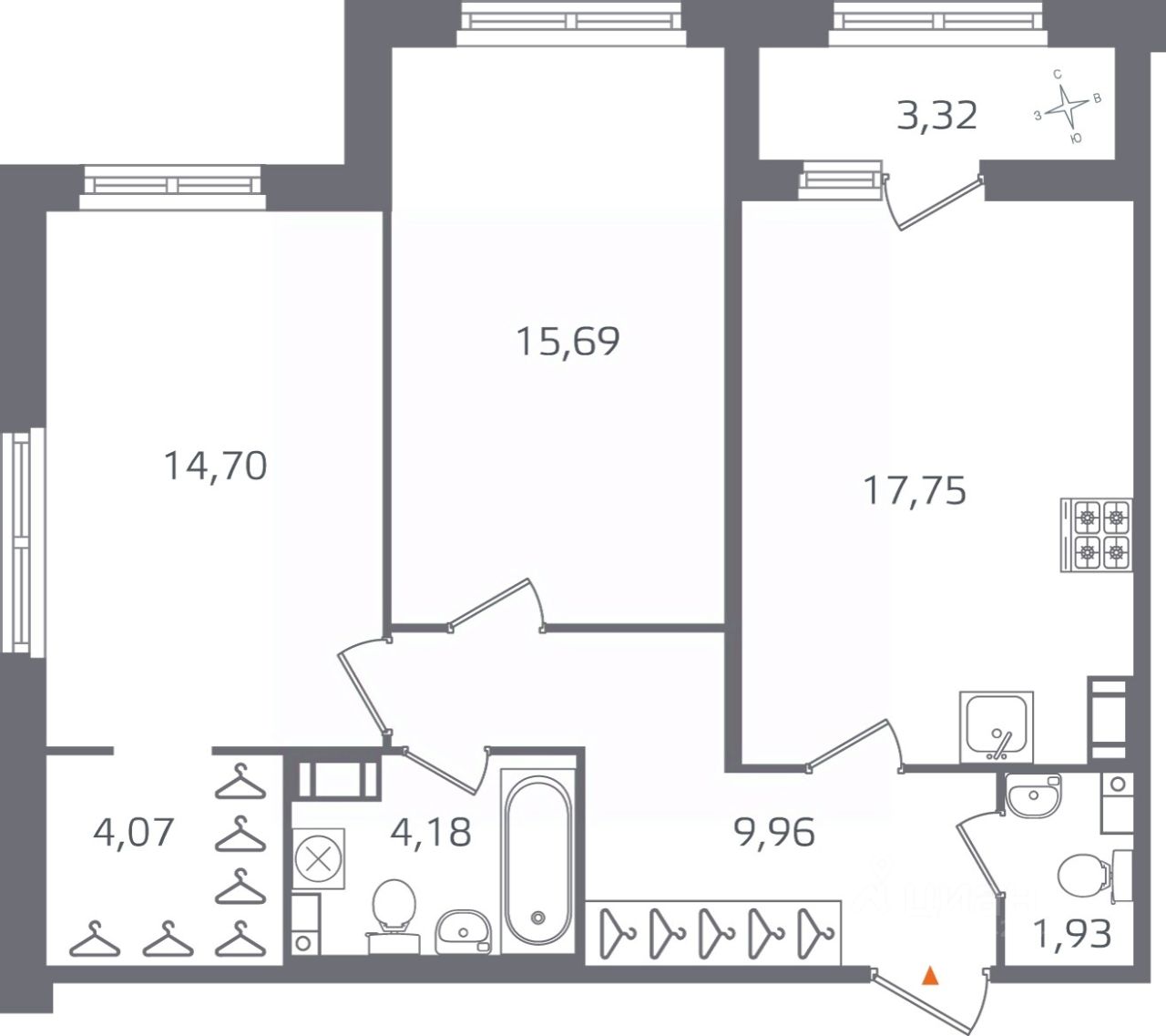Общая площадь68,28 м²