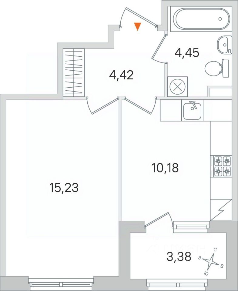 Жилая площадь15,2 м²
