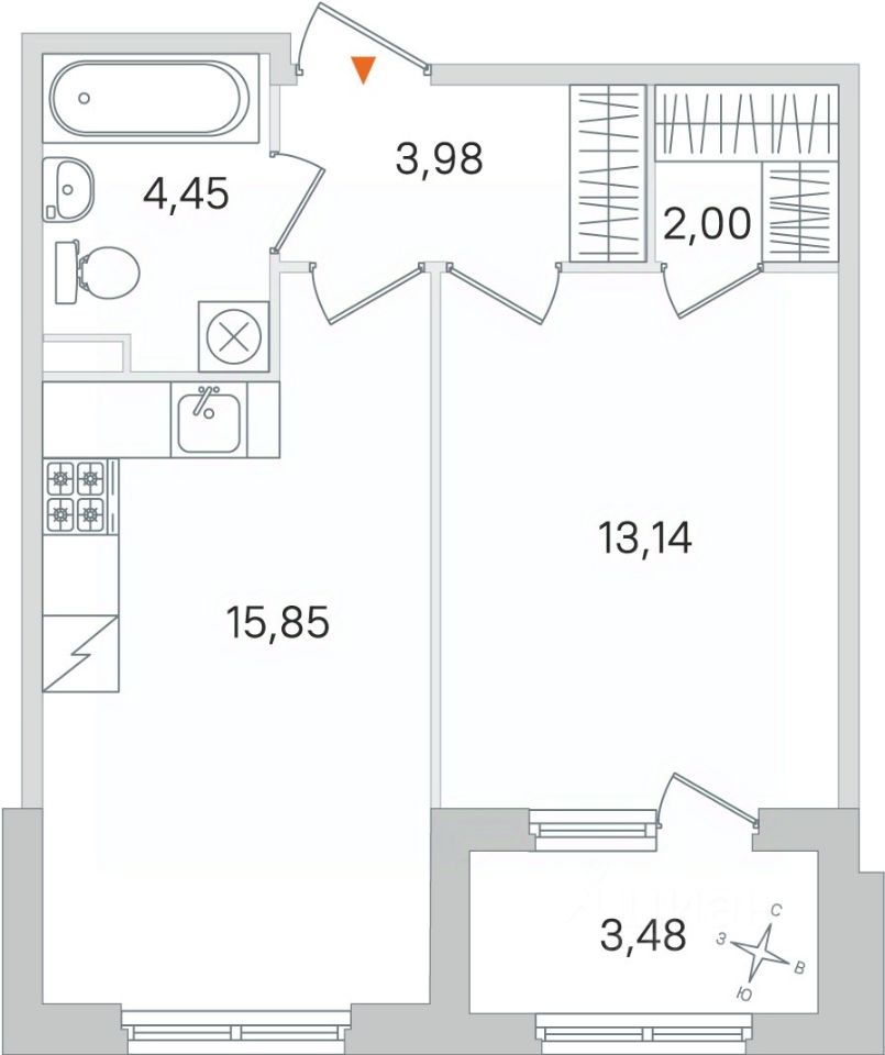Жилая площадь13,1 м²