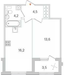 Жилая площадь13,6 м²