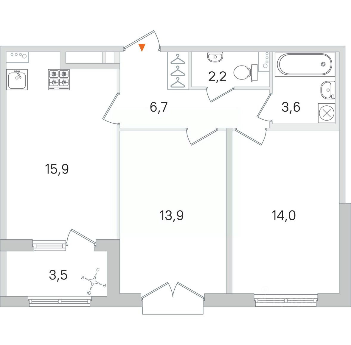 Площадь кухни15,9 м²