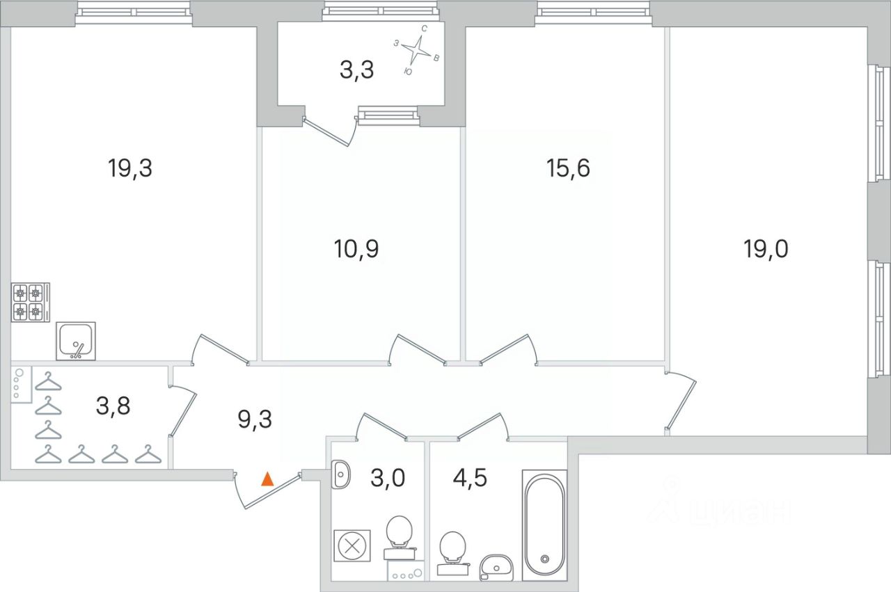 Площадь кухни19,3 м²