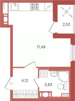 Общая площадь25,44 м²