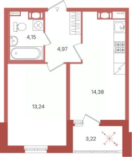 Жилая площадь13,2 м²
