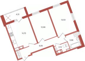 Общая площадь55,57 м²