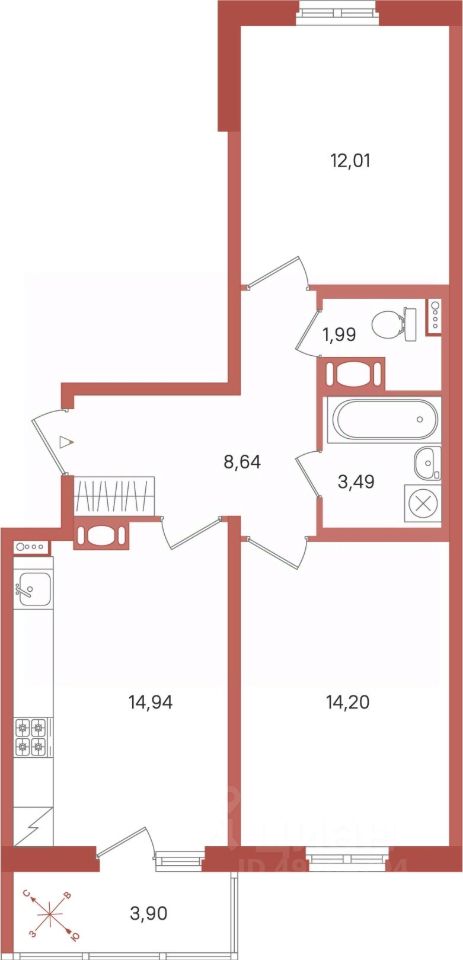 Площадь кухни14,9 м²