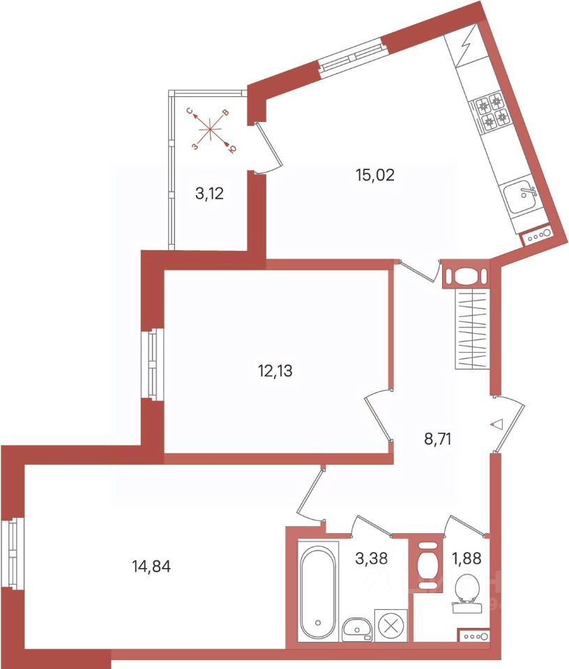 Общая площадь55,96 м²