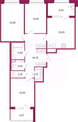 Площадь кухни15,6 м²