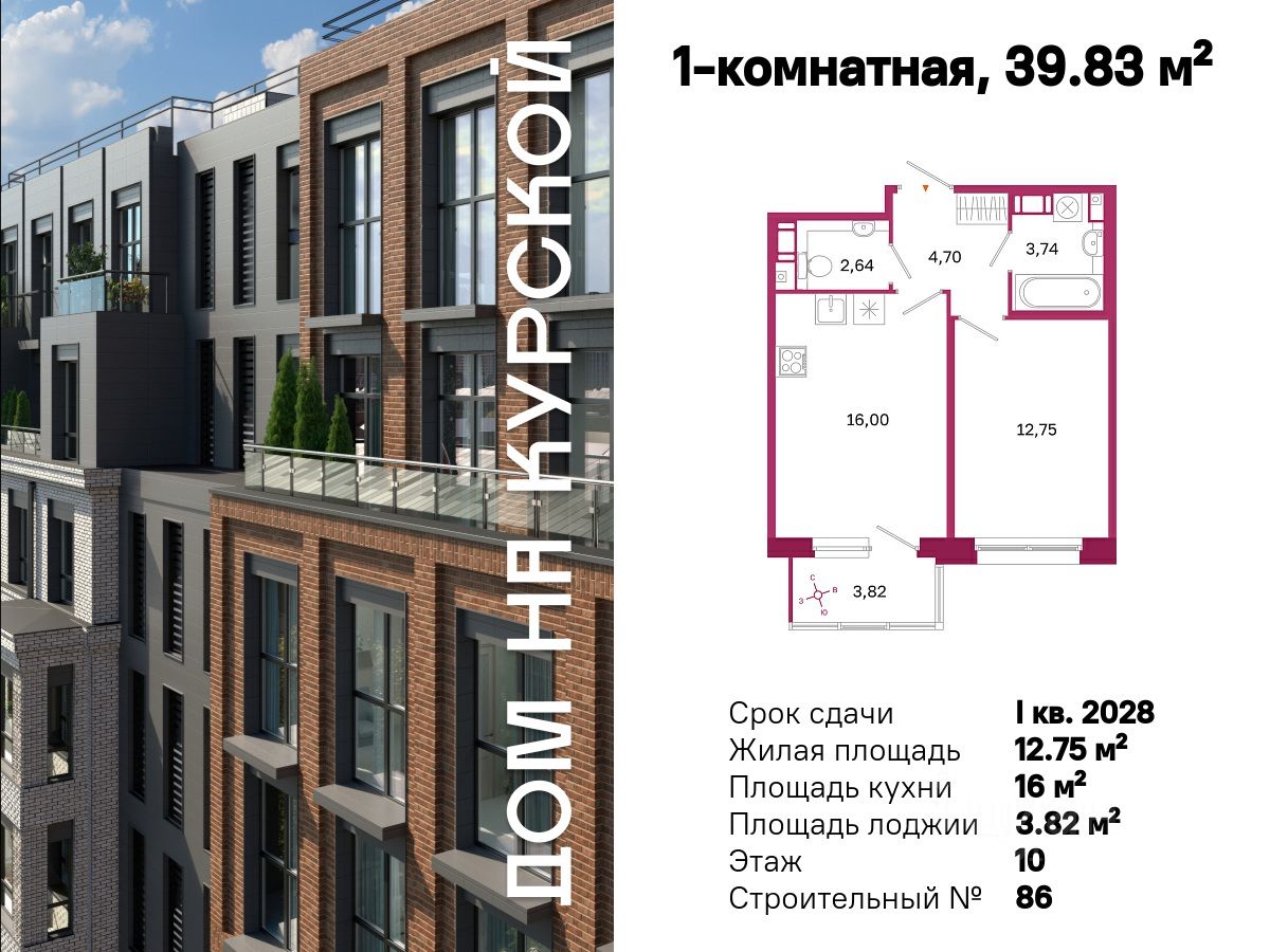 Общая площадь39,83 м²