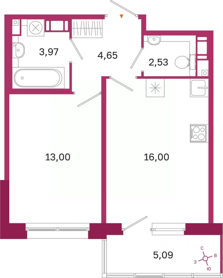 Площадь кухни16 м²