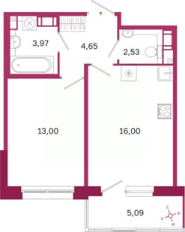 Общая площадь41,68 м²