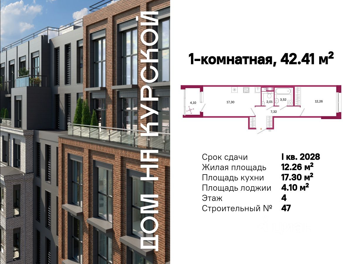 Общая площадь42,41 м²