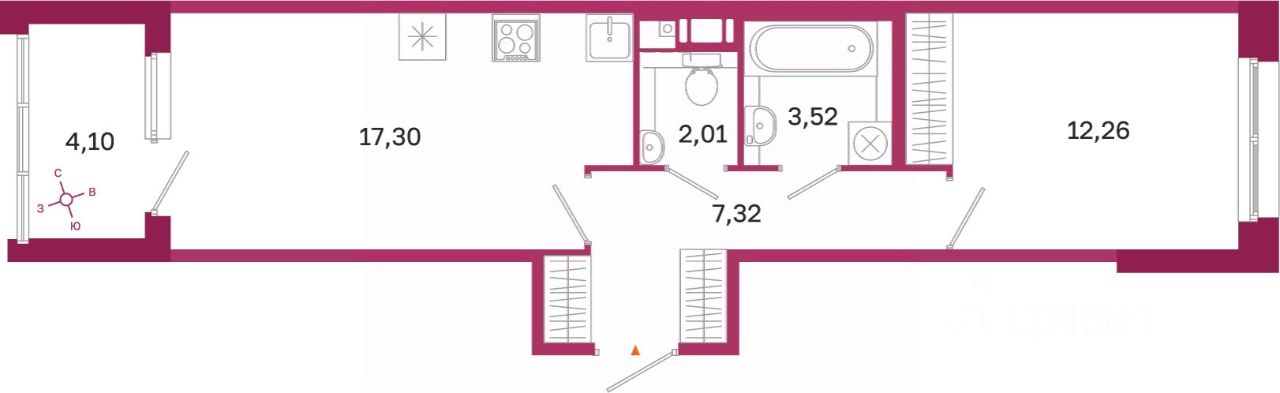 Общая площадь42,41 м²