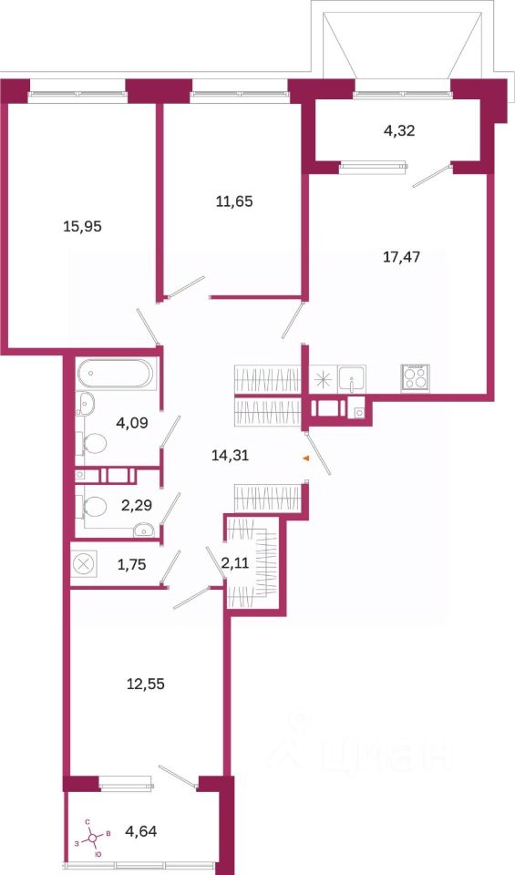 Площадь кухни17,5 м²