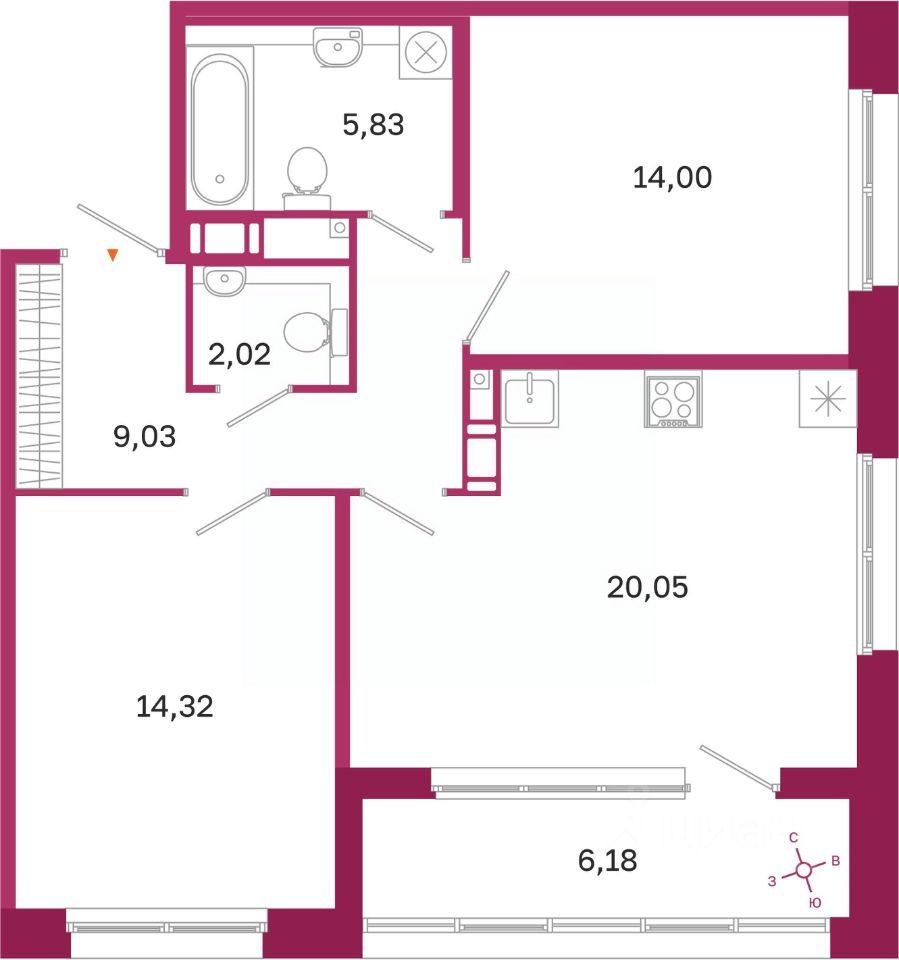 Общая площадь68,34 м²