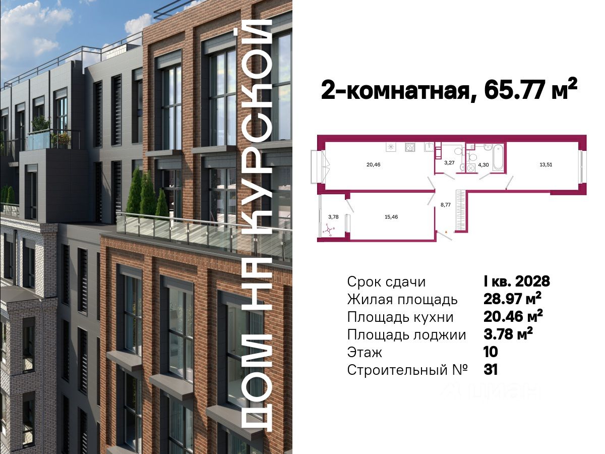 Общая площадь65,77 м²