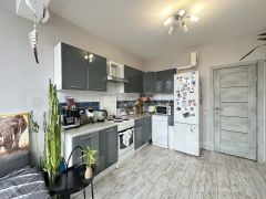 Пространство организовано рационально: большая гардеробная позволяет отказаться от лишней мебели для хранения, а просторный коридор добавляет ощущение простора. Санузел совмещенный, оборудован стиральной машиной и дополнительным шкафом. Кухня оснащена функциональным гарнитуром, раздвижным двухспальным диваном и обеденным столом. Комнату можно адаптировать под разные сценарии использования — выделить спальную и рабочую зоны или разделить на две отдельные спальные площади.