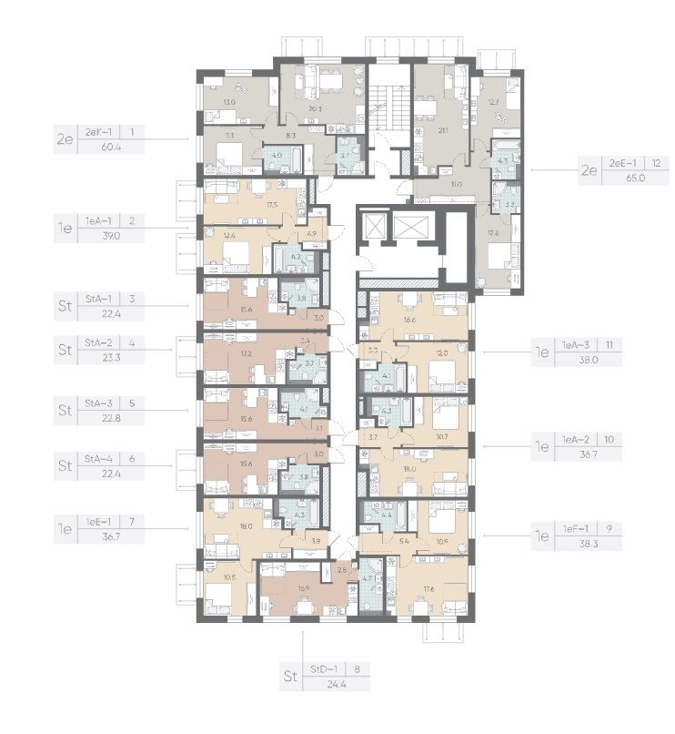Горизонтальная разводка труб водоснабжения и отопления и вынесенные в холлы счетчики сохранят эстетичный дизайн комнат. Встроенные клапаны инфильтрации воздуха будут поддерживать чистоту и свежесть воздуха.