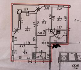 Жилая площадь -59,7 ( 26,4+17,6+15,7 )