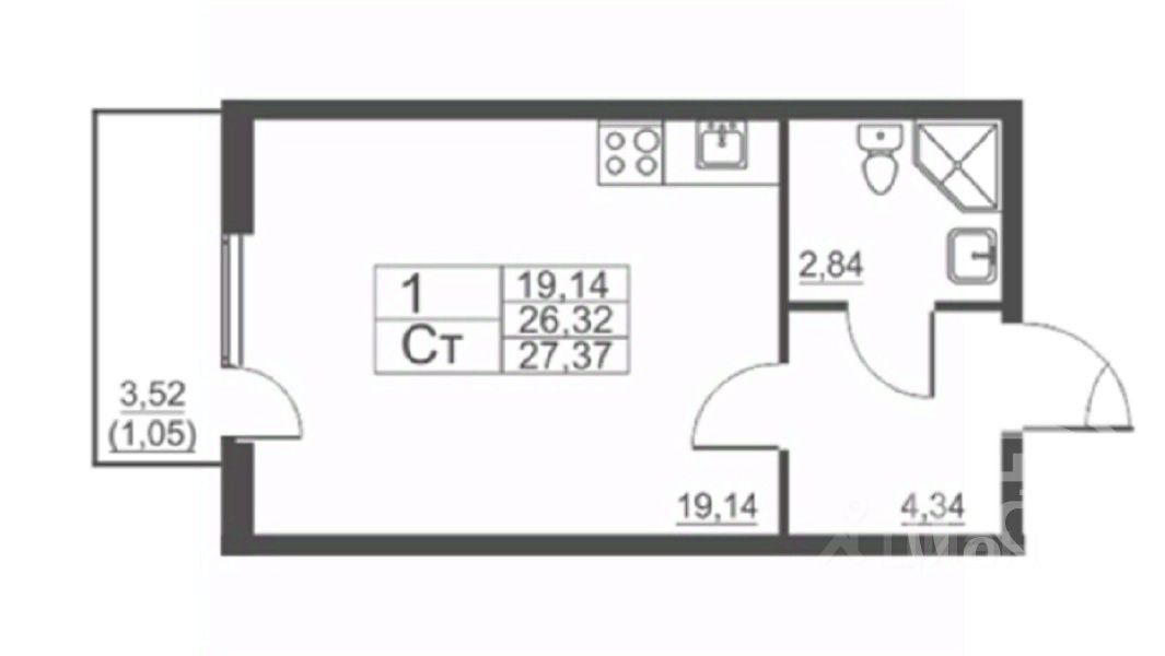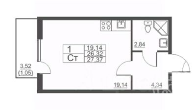 Комната- 19,14 м2