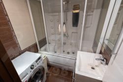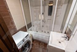 Межкомнатные двери и кухня выполнены из натурального массива. Фотографии соответствуют действительности. Санузел оборудован ванной с джакузи и экраном до потолка. В туалете установлен гигиенический душ. Балкон застеклен, оснащен сушилкой для белья, проведено электричество (свет и розетка).