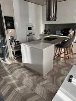Укомплектована всем необходимым: Встроенная кухня с современной бытовой техникой (варочная панель, духовой шкаф, посудомоечная машина, холодильник, вытяжка), стиральная машина, теплые полы в ванной комнате.