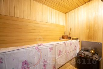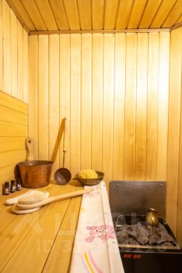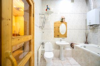 Просторная ванная (10 кв.м.) с большой джакузи и финской сауной (отделка деревом).