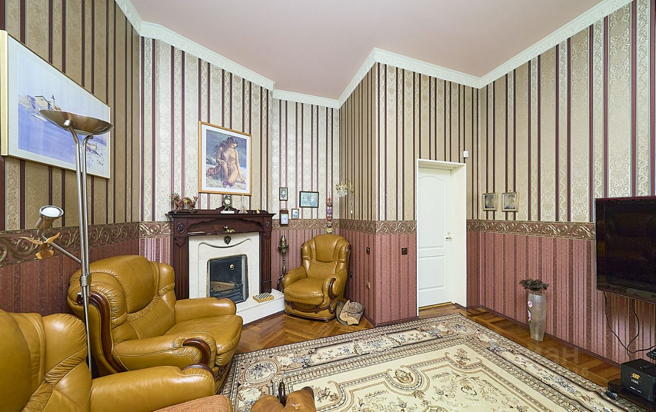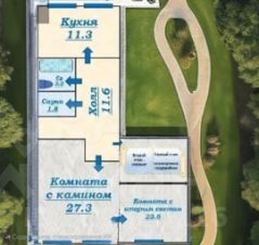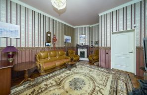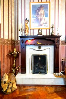 Гостиная (27.3 кв.м.) с камином из мрамора , вытяжка.