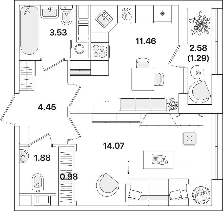 Продаётся 1к.кв. в ЖК Академик от застройщика Холдинг "РСТИ" (Росстройинвест).