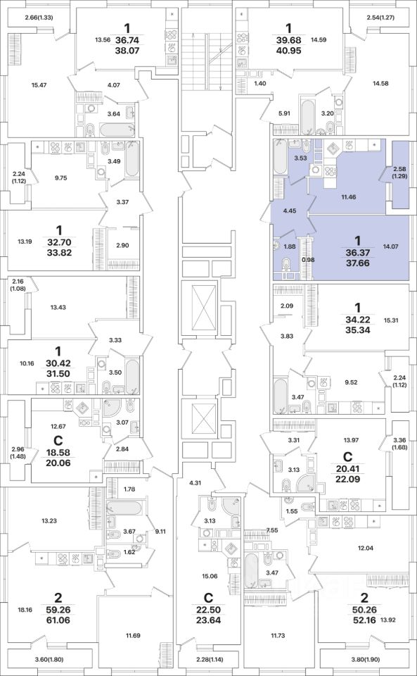 В доме есть квартиры разных метражей от студий до трехкомнатных, в том числе европланировки с просторной кухней-гостиной, а также лоты с мастер-спальнями. Квартиры на верхних этажах (10-м, 11-м и 12-м) имеют увеличенную площадь остекления и более высокие потолки (до 3 метров). Есть варианты с чистовой отделкой, предчистовой отделкой white box и без отделки.