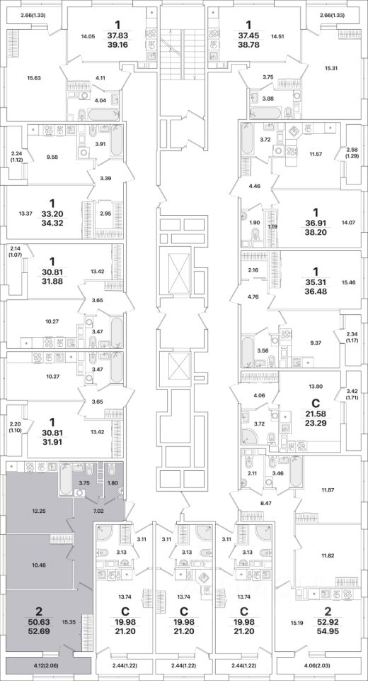 Квартира находится в 12 этажном доме, в Академик Жилой дом 1 на 8 этаже. Общая площадь квартиры 52,90 кв.м.