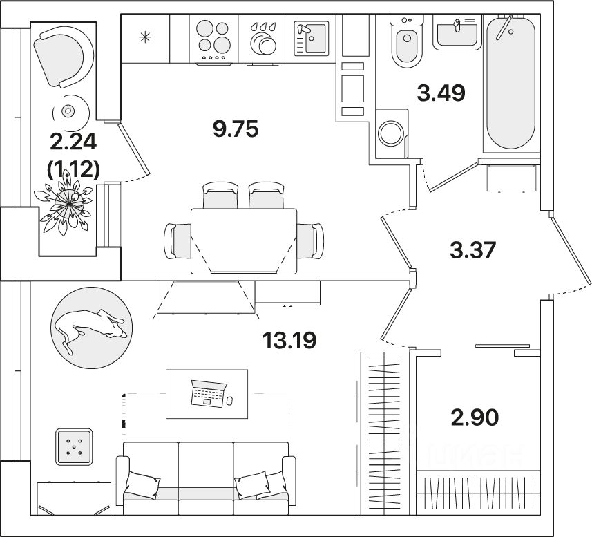 В доме есть квартиры разных метражей от студий до трехкомнатных, в том числе европланировки с просторной кухней-гостиной, а также лоты с мастер-спальнями. Квартиры на верхних этажах (10-м, 11-м и 12-м) имеют увеличенную площадь остекления и более высокие потолки (до 3 метров). Есть варианты с чистовой отделкой, предчистовой отделкой white box и без отделки.